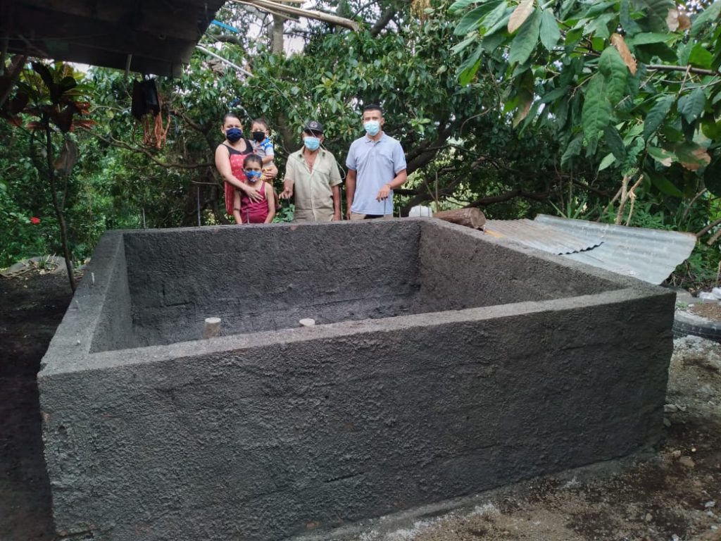 Avance de la organización OIKOS en la implementación de 9 sistemas de cosechas de agua, en la comunidad “Chambala” ubicada en el municipio de Chinameca, departamento de San Miguel.