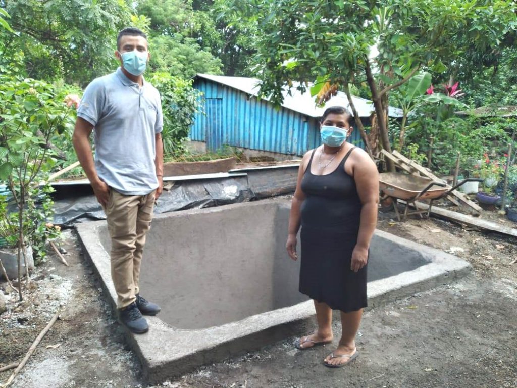 Con respecto a la actividad «Construcción de Sistemas de cosechas de agua”, actualmente están en construcción en el municipio de Alegría 8 reservorios de captación de aguas lluvias con geomembrana, con una capacidad de almacenamiento de agua lluvia de 15 metros cúbicos.