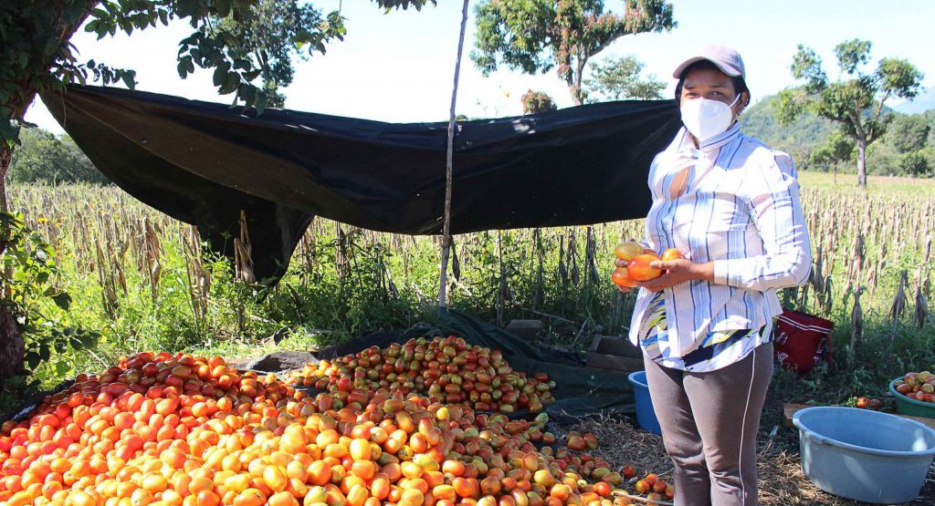 Ana Ochoa, madre soltera con 4 hijos, es una agricultora de la comunidad Chambala que tradicionalmente se ha dedicado a la siembra de maíz y frijol, señala que con las pérdidas de estos granos por las últimas lluvias, el tomate se ha convertido en una alternativa, pues la producción de esta hortaliza además de contribuir a su alimentación es ahora una fuente de ingreso.