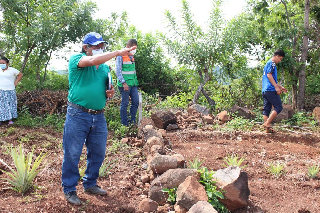 En el caso del municipio de Intipucá se ha implementado la escuela de campo que ha permitido hacer asignación de parcelas demostrativas y en las que se orientó en un 20% de forma teórica y un 80% práctica. A partir de lo anterior se hizo asignación de parcelas a las familias beneficiarias para aprender desde la preparación de suelo (el de esta zona es arcilloso), hasta la transformación a uno más viable para el cultivo, esto ha sido posible a través de utilización de abono orgánico y técnicas para mejorar la absorción del agua, explica Alonso Gomez, técnico del proyecto en la zona.